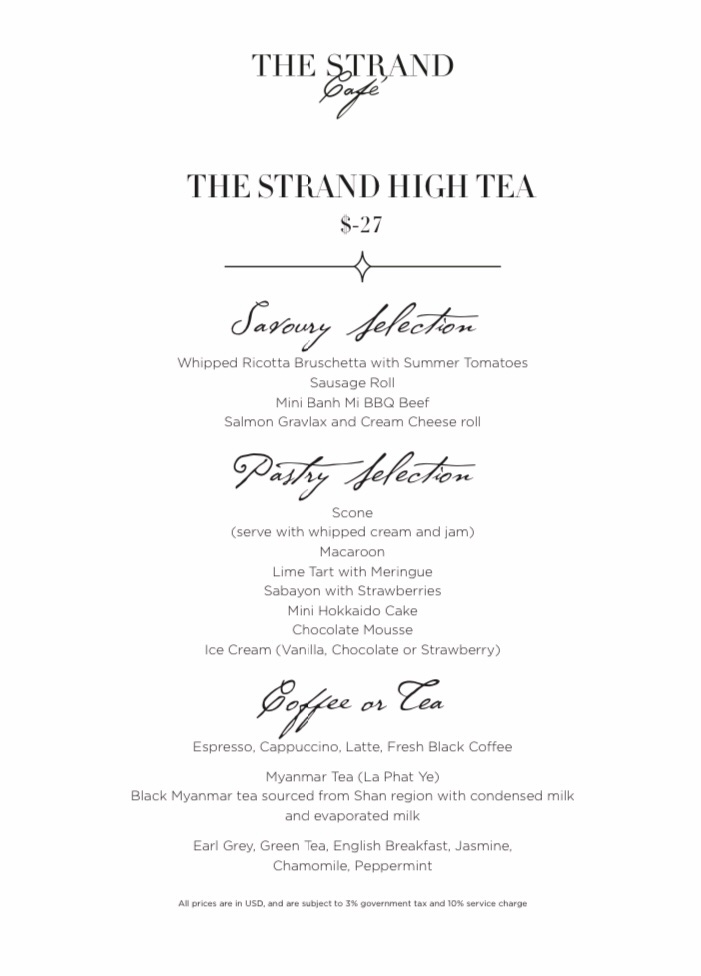The renowned High Tea at the Strand Café offers guests a timeless journey amidst an elegant setting over a selection of pastries and savouries with the Classic High Tea Menu. For a twist, experience traditional Myanmar delicacies through the Myanmar high tea menu, which originated at The Strand Hotel.